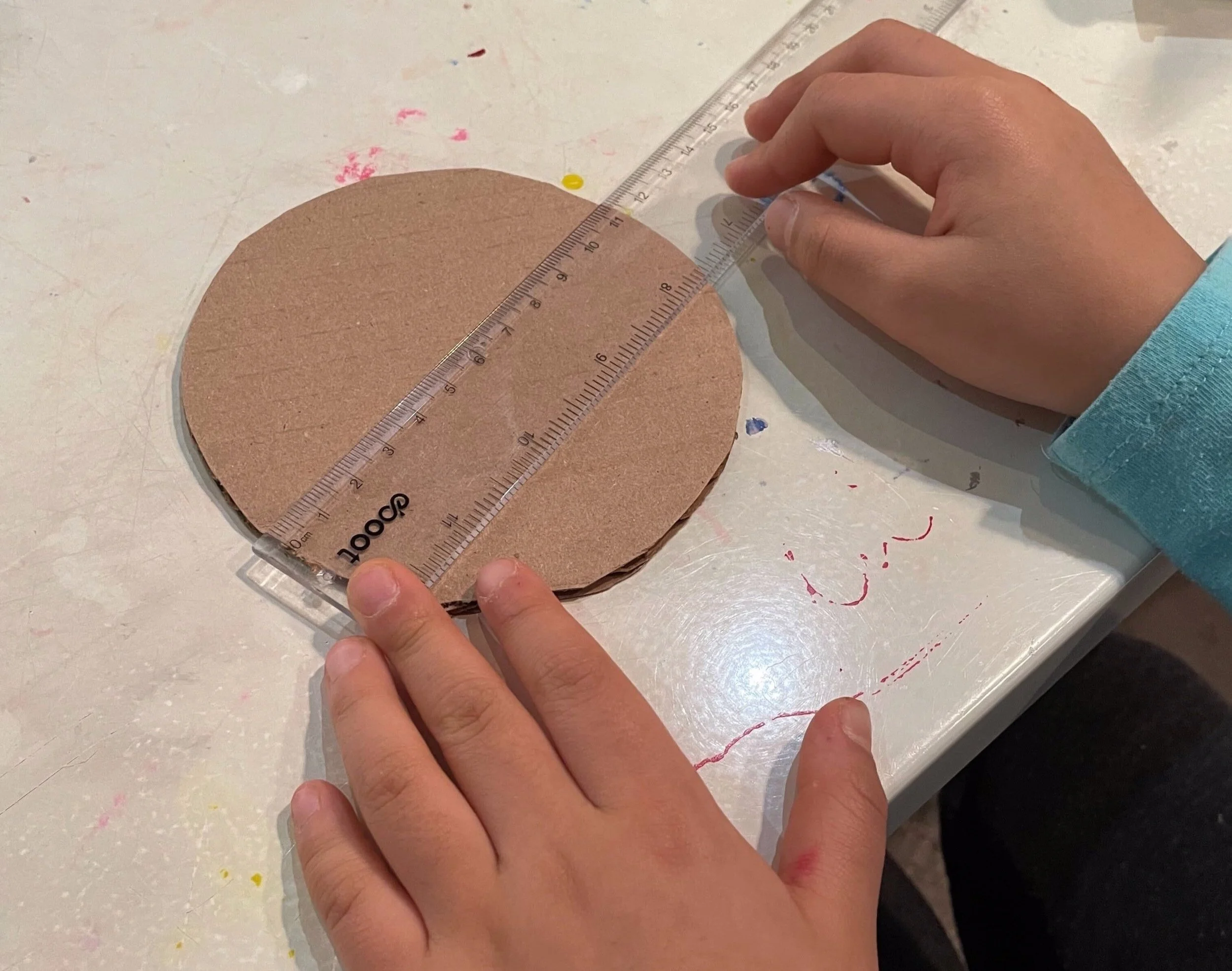 This is how I got obsessed with circles and the number Pi (hence, the circular logo for The GIANT Room). To initiate this obsession, you need a ruler, a compass, a cardboard, a piece of paper, a marker, and a scissor. Draw as many circles in different sizes as you can on the cardboard using your compass. Cut out the circles using the scissors. Now you have so many fun wheels, faces, or whatever you want to imagine these circles to be!
