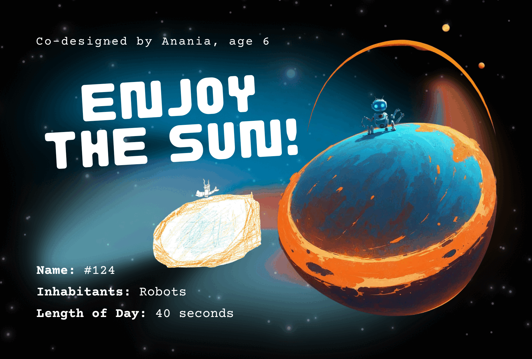 Co-designed and co-written by 12 GIANT participants, AI, and a multidisciplinary team of artists, educators, and writers at The GIANT Room, these special summer solstice postcards are sure to stand out and leave a lasting impression.