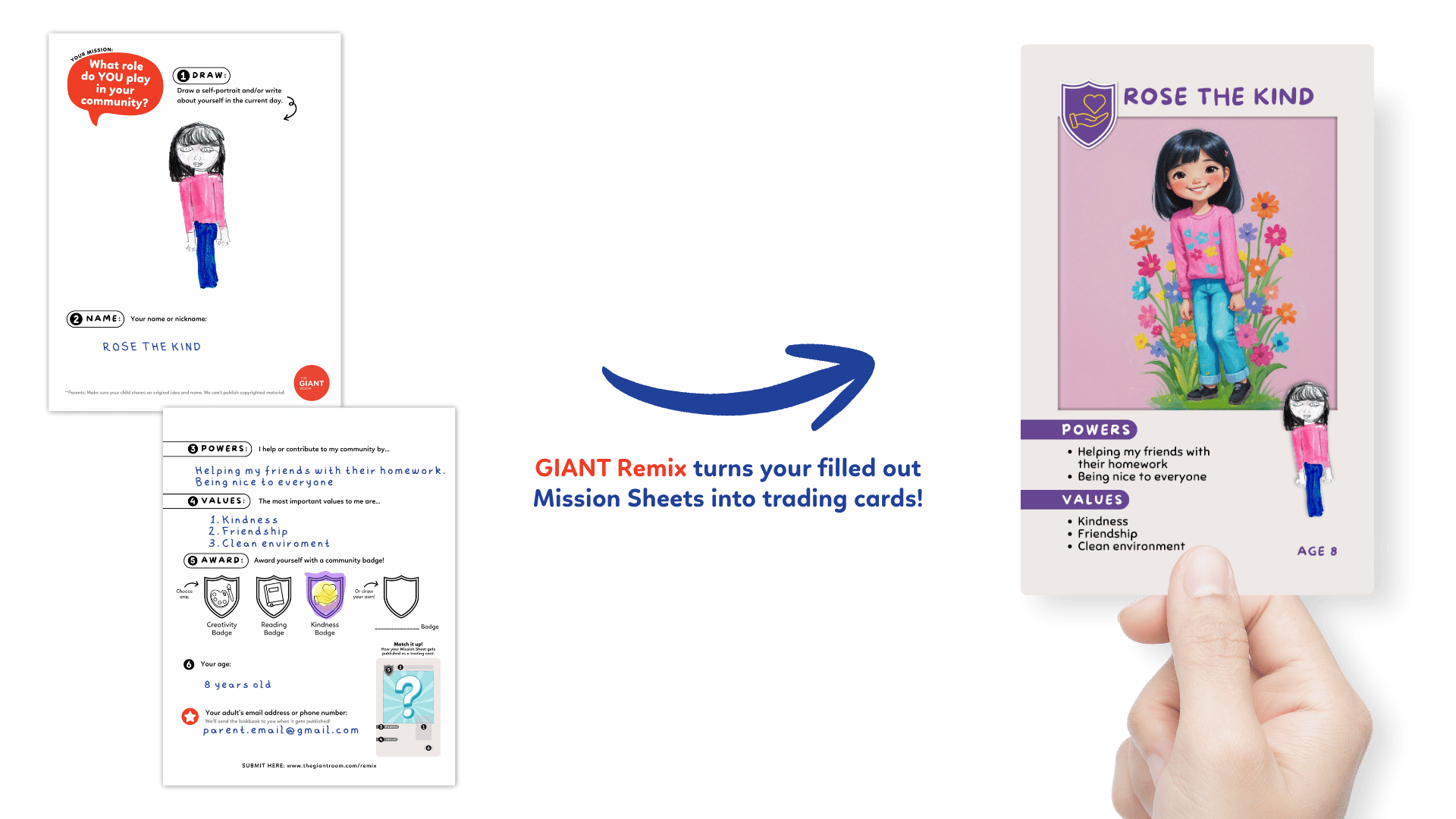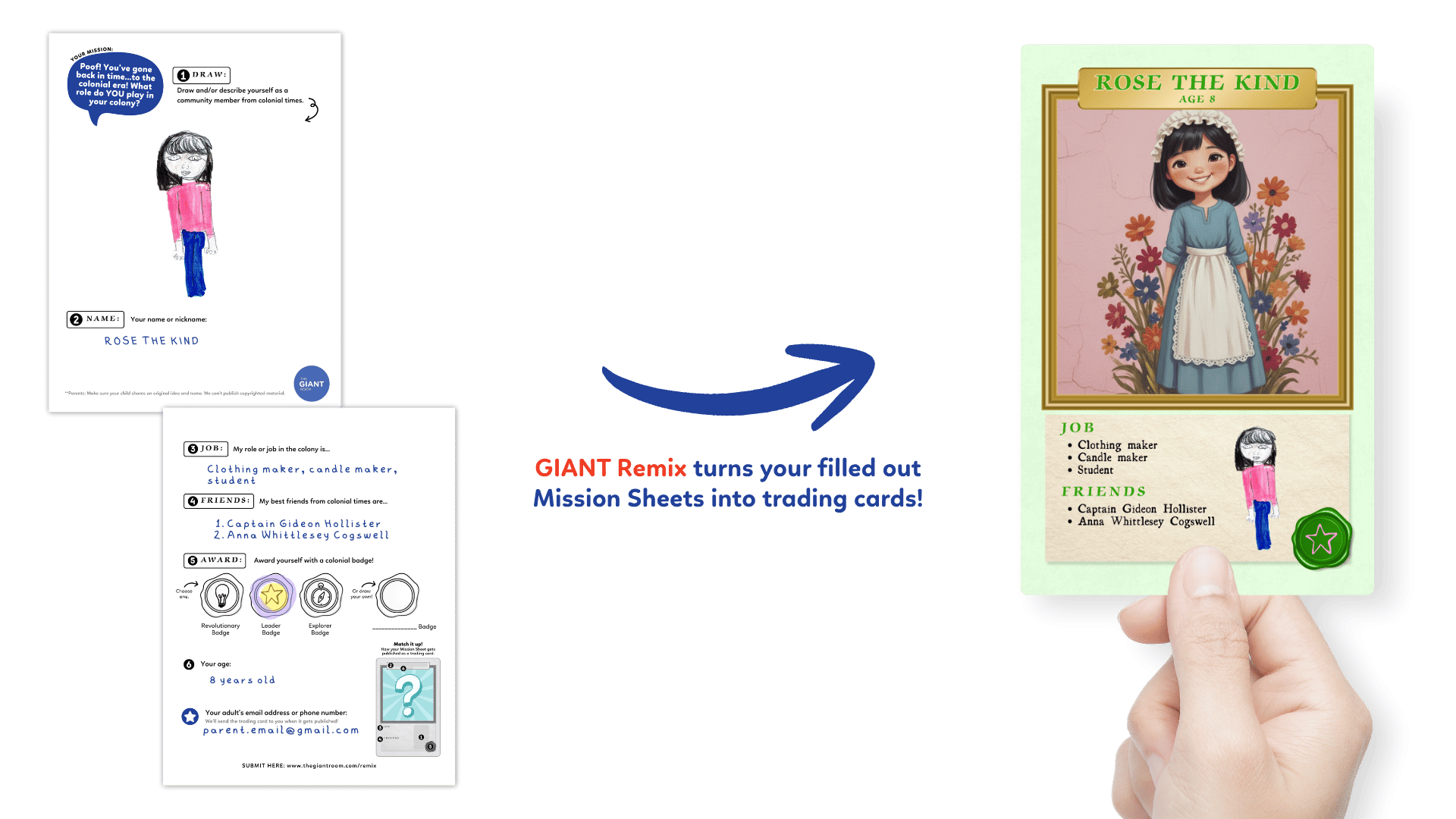 OPTIONAL: Include your contact info on the Mission Sheet to see your trading card before it’s published and make any edits or changes you’d like.